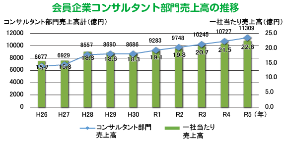 | 注1) | 協会会員のうち専業企業(コンサルタント業務が全売上の80%以上の企業)の集計 ※数値は各年度3月31日現在 |